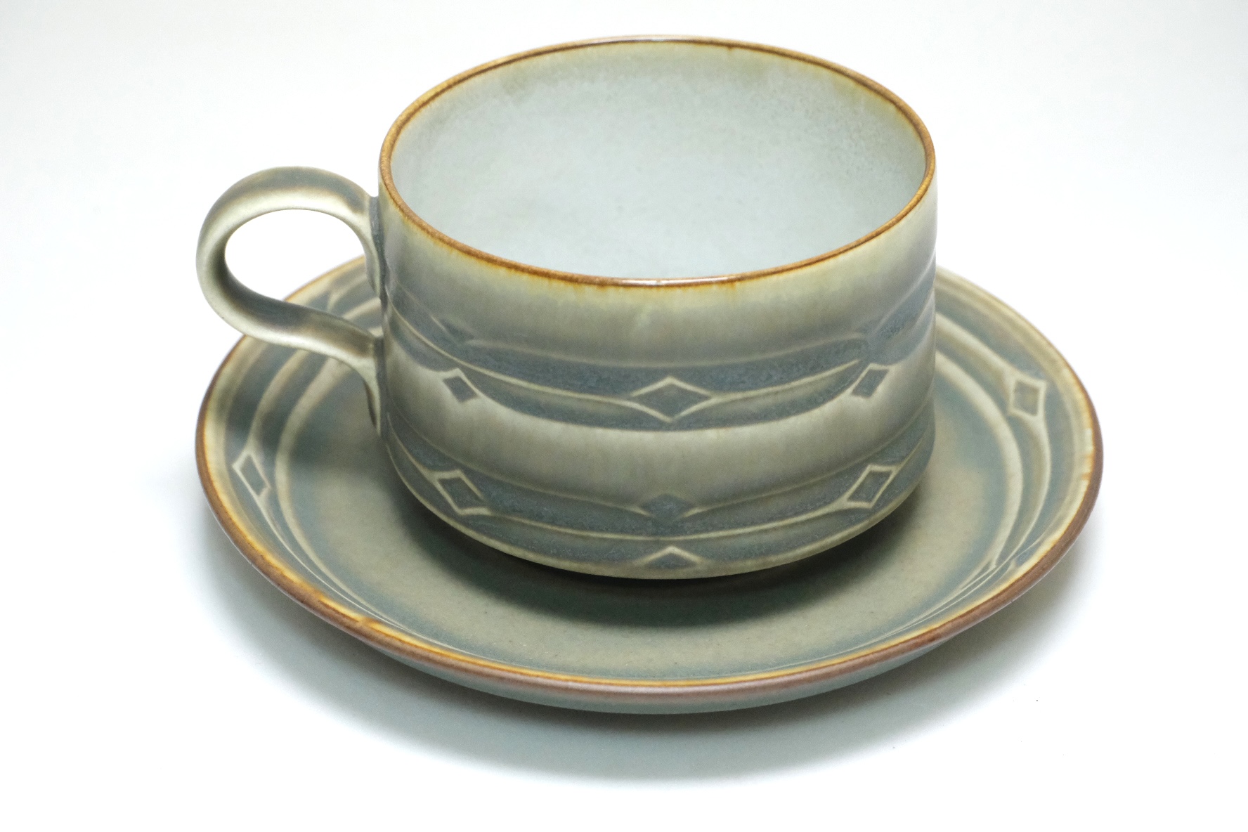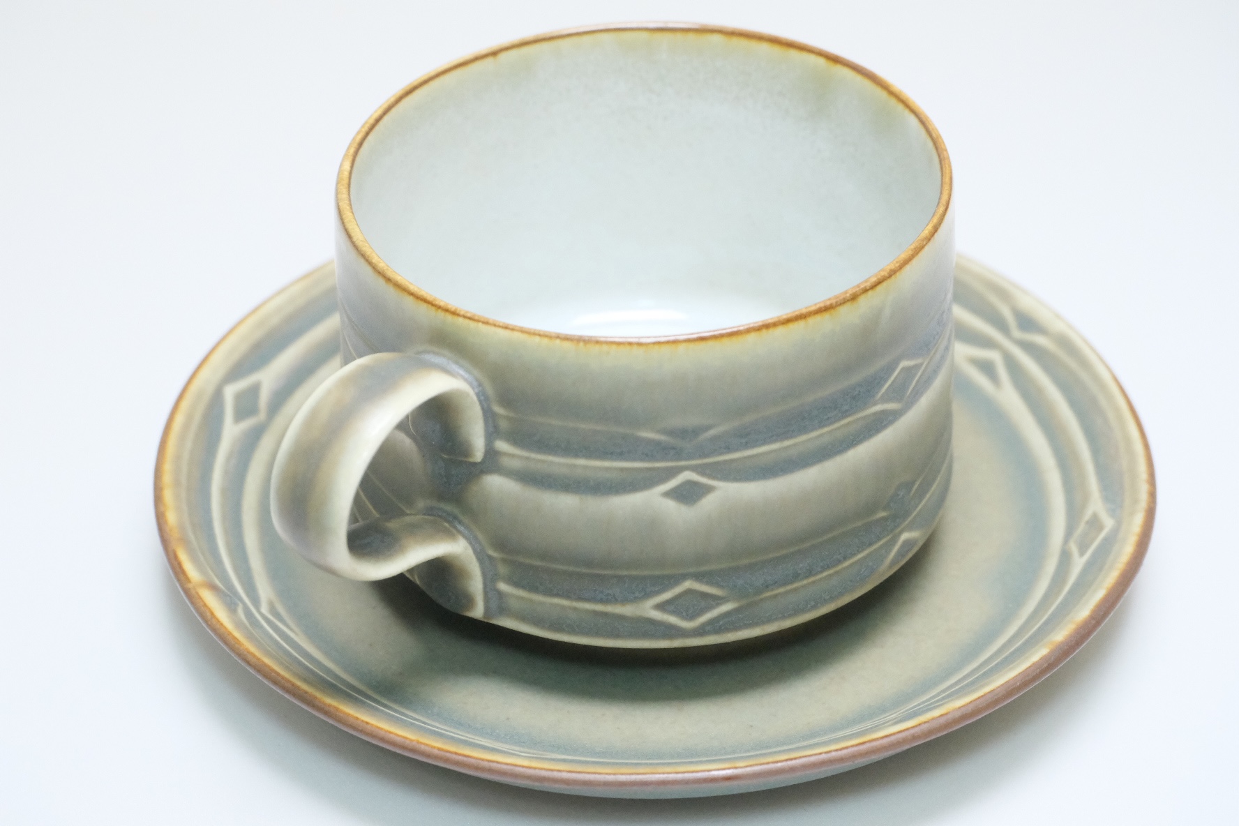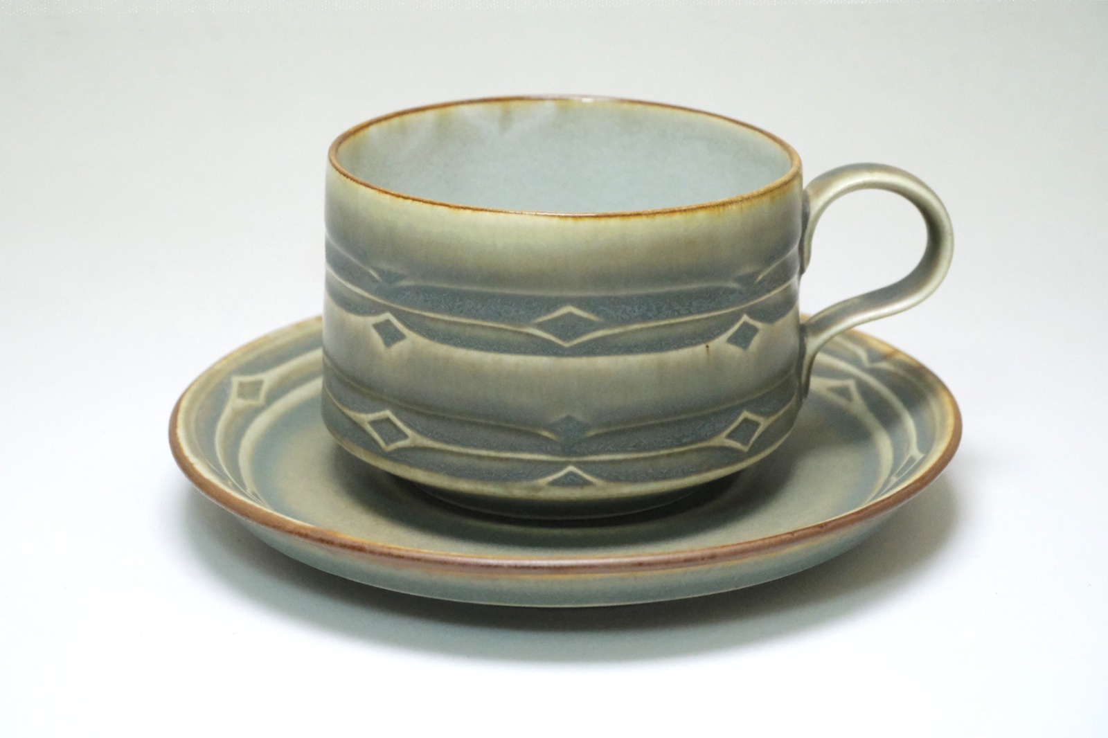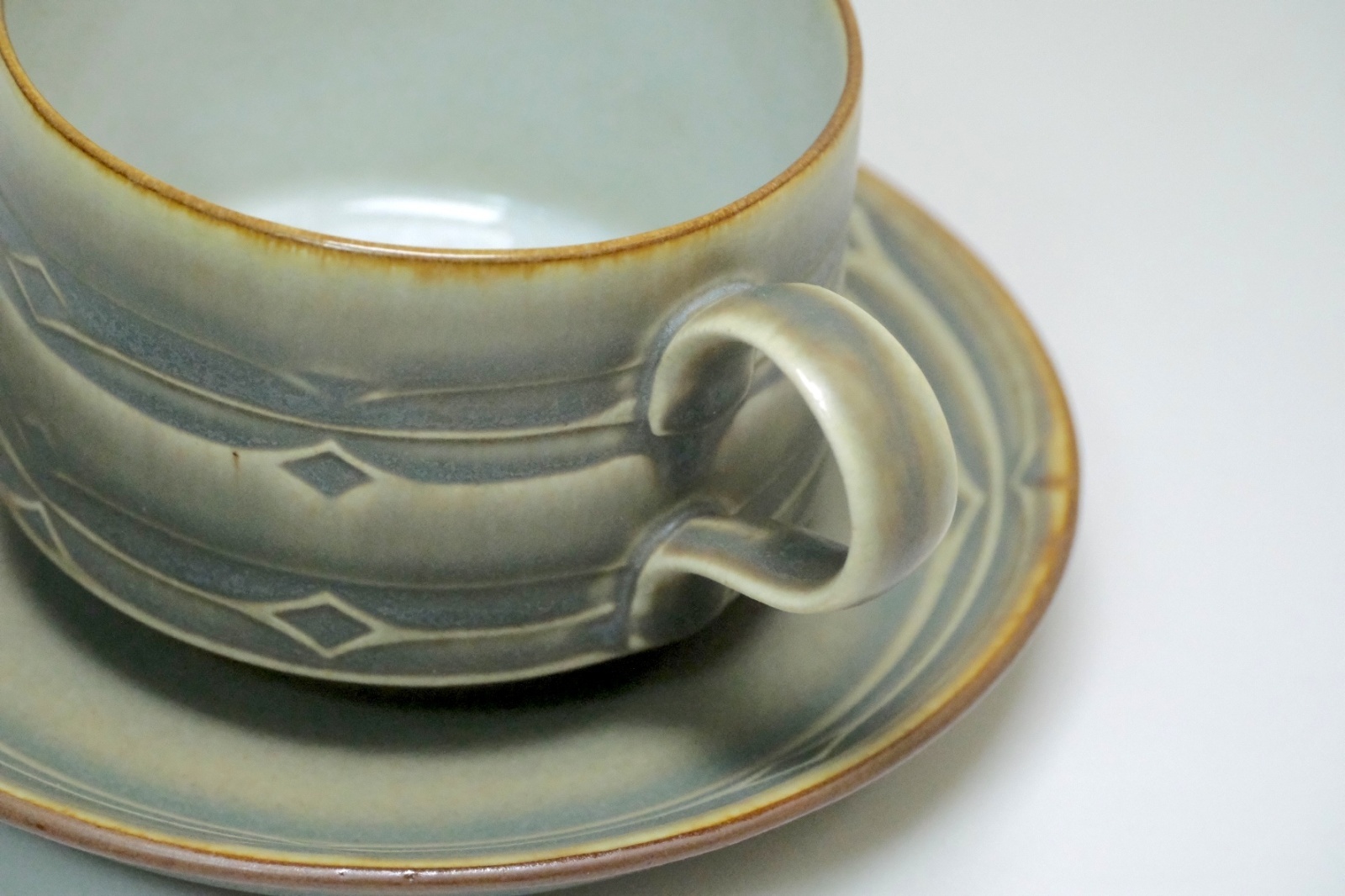 オリーブカラーの落ち着いたカップ&ソーサーです。