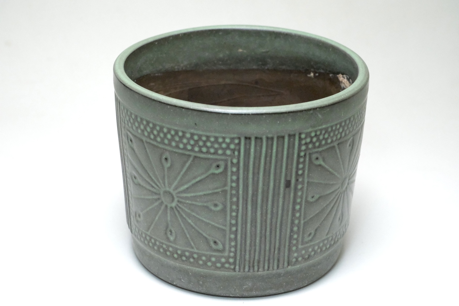 北欧ガーデニンググッツ/ビンテージ/Upsala Ekeby/ウプサラエクビィ/植物ポット/鉢/H12cm/モスグリーン