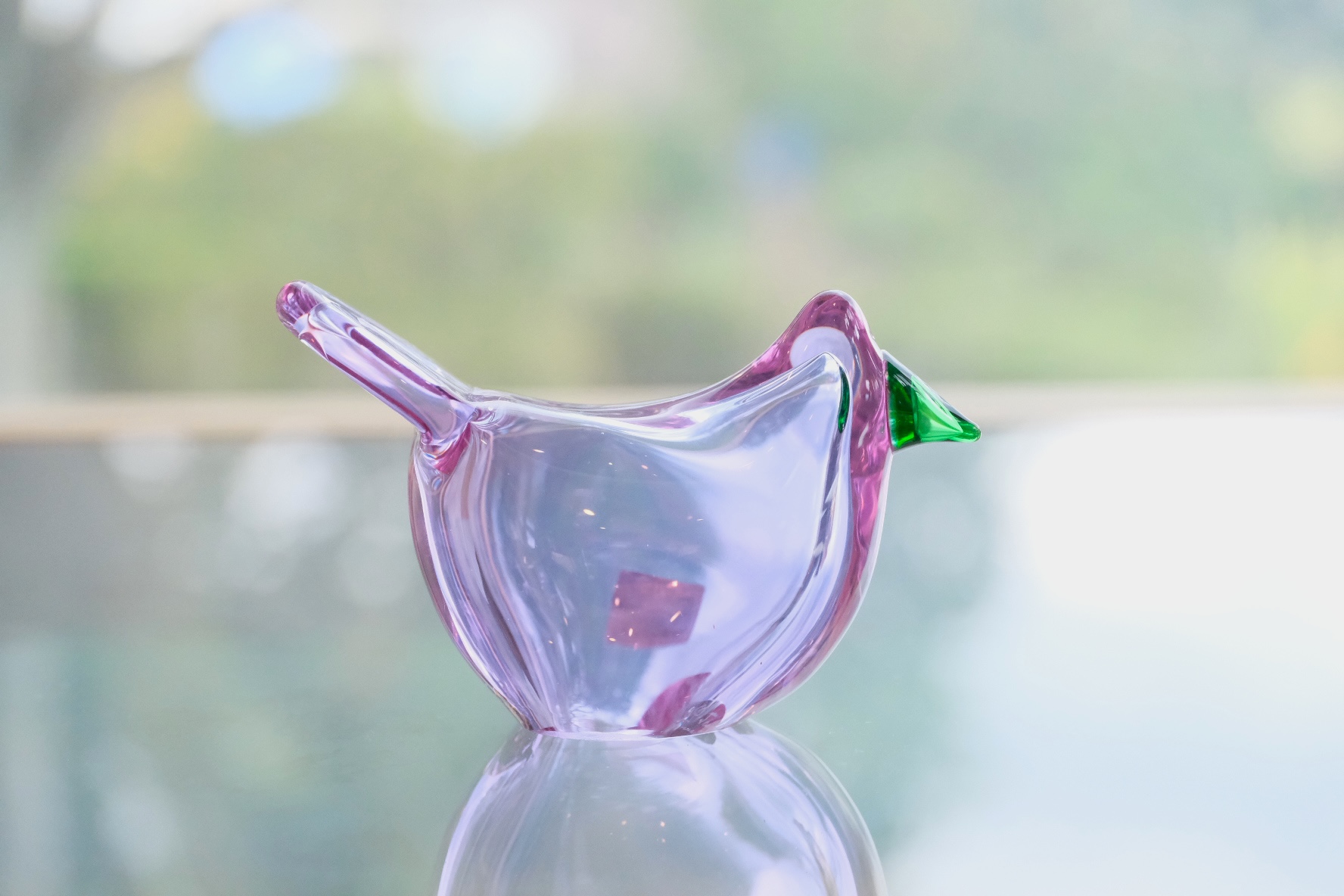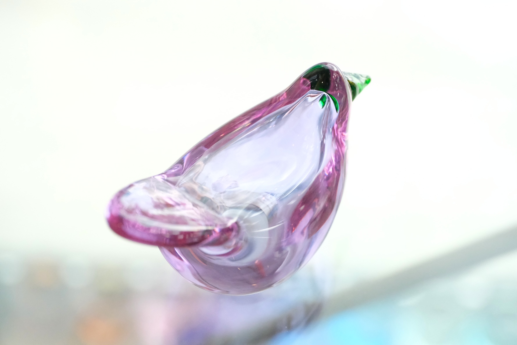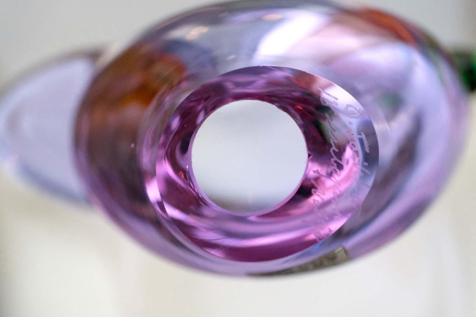 北欧アートガラス/ビンテージガラス/Oiva Toikka/オイバ・トイッカ/Nuutajarvi/ヌータヤルヴィ/Sieppo/初期シエッポ/アメジスト&グリーン