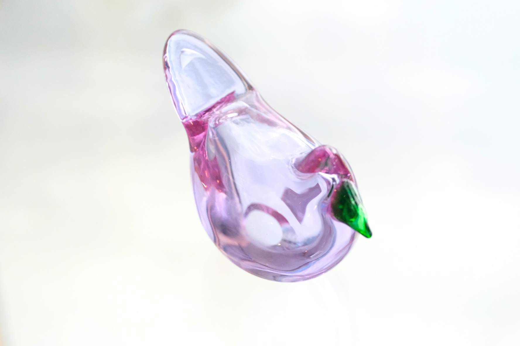 アメジストガラスは蛍光灯の明かりのもとでは色が変わりグレーのような色合いになります。