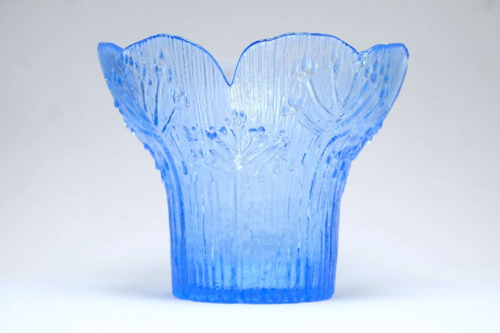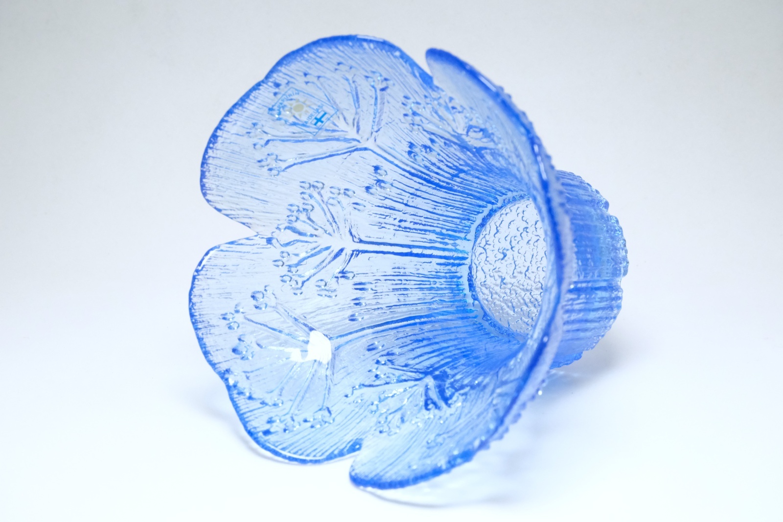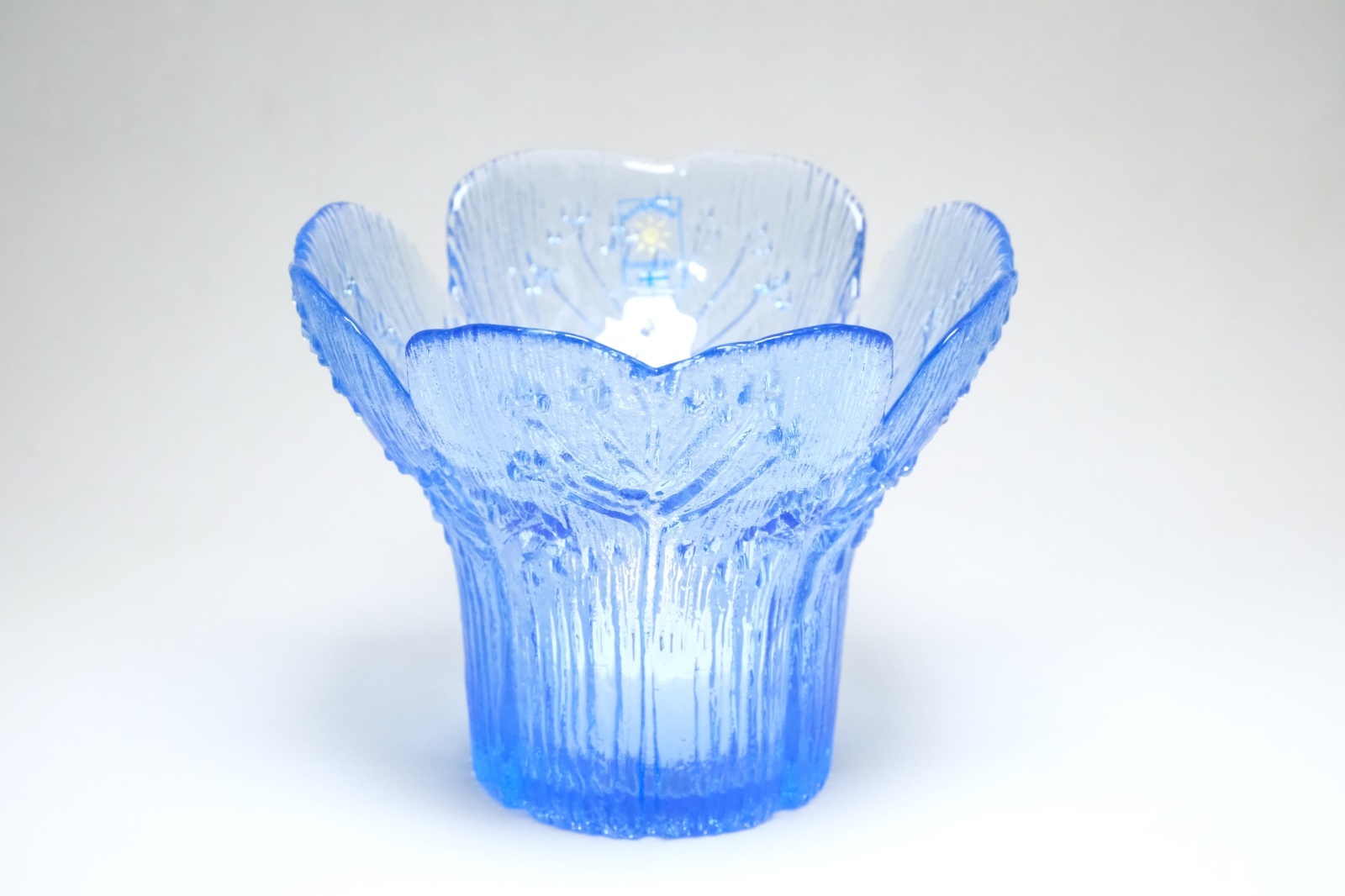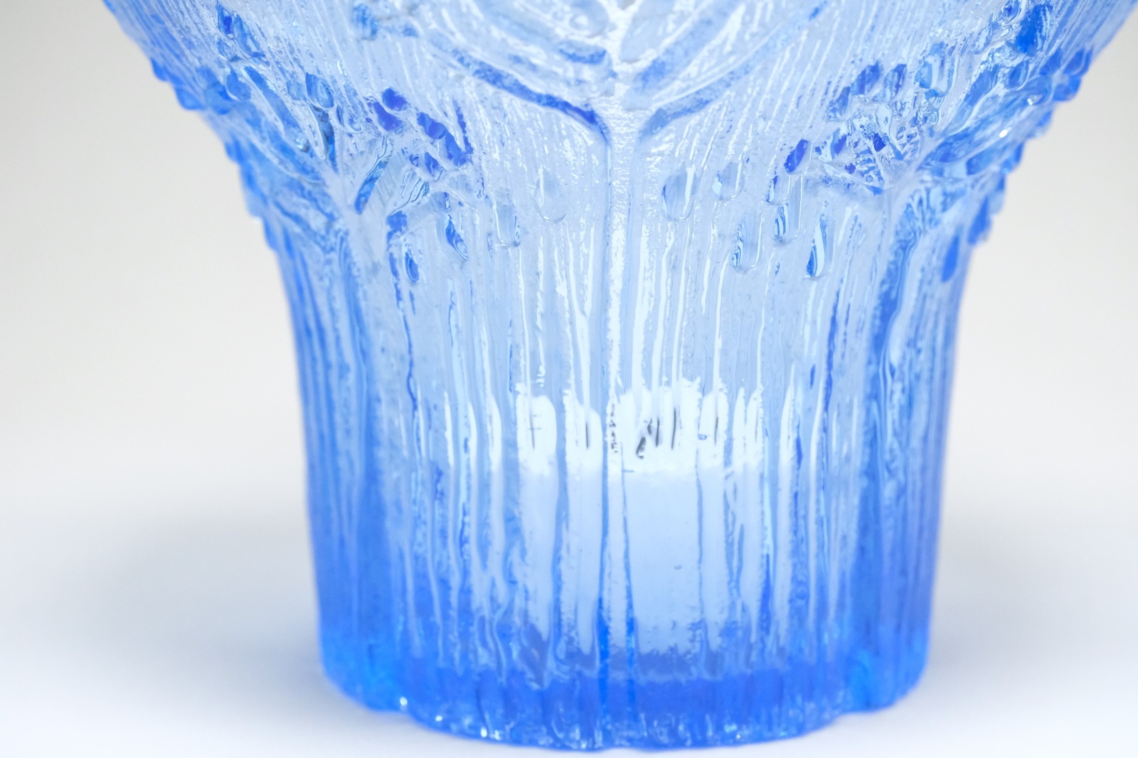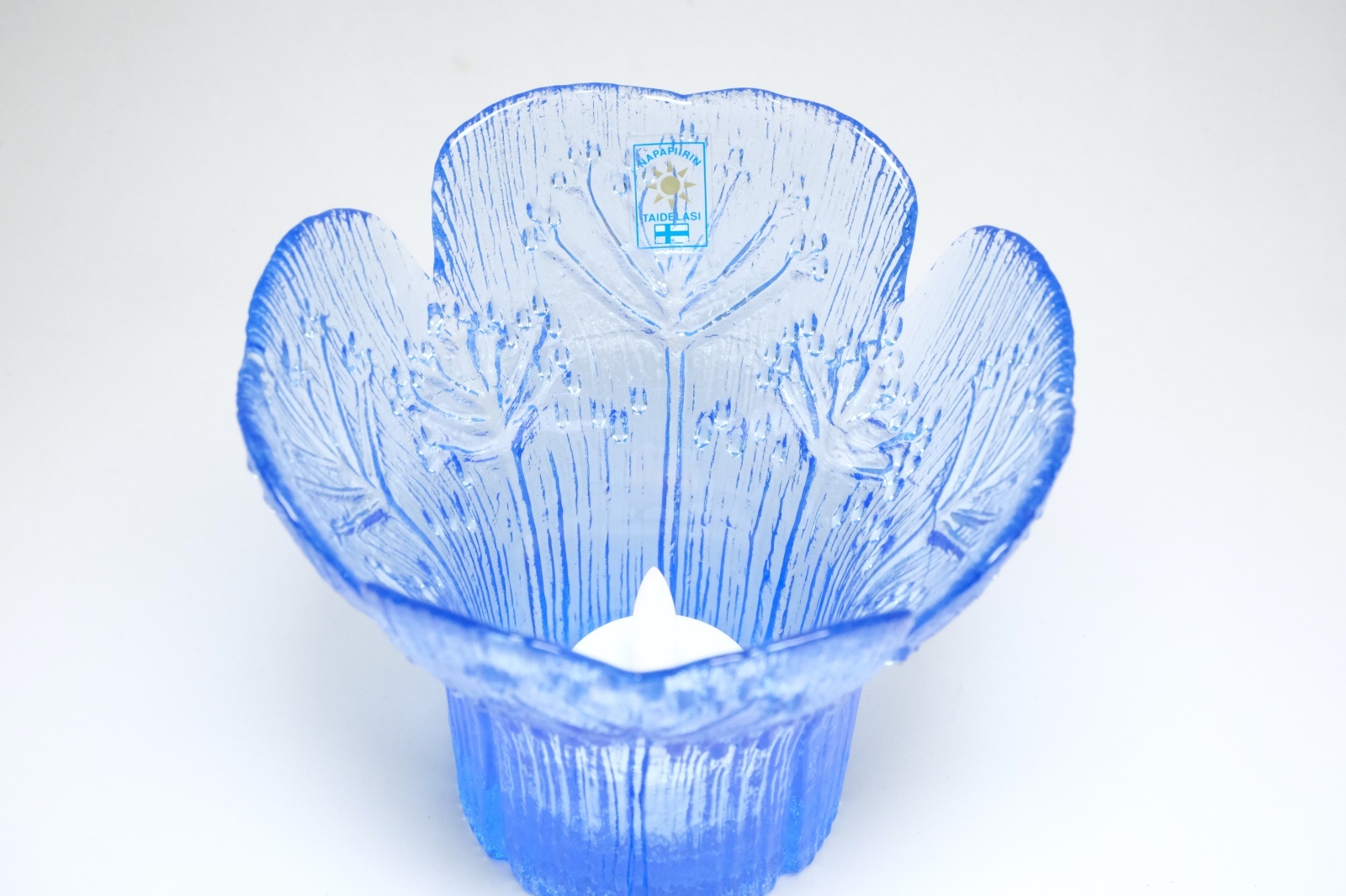 ビンテージ北欧ガラス/フィンランド/Mantsalan Lasisepat/シャク/レアカラーブルー/Lサイズ/花瓶/キャンドルホルダー