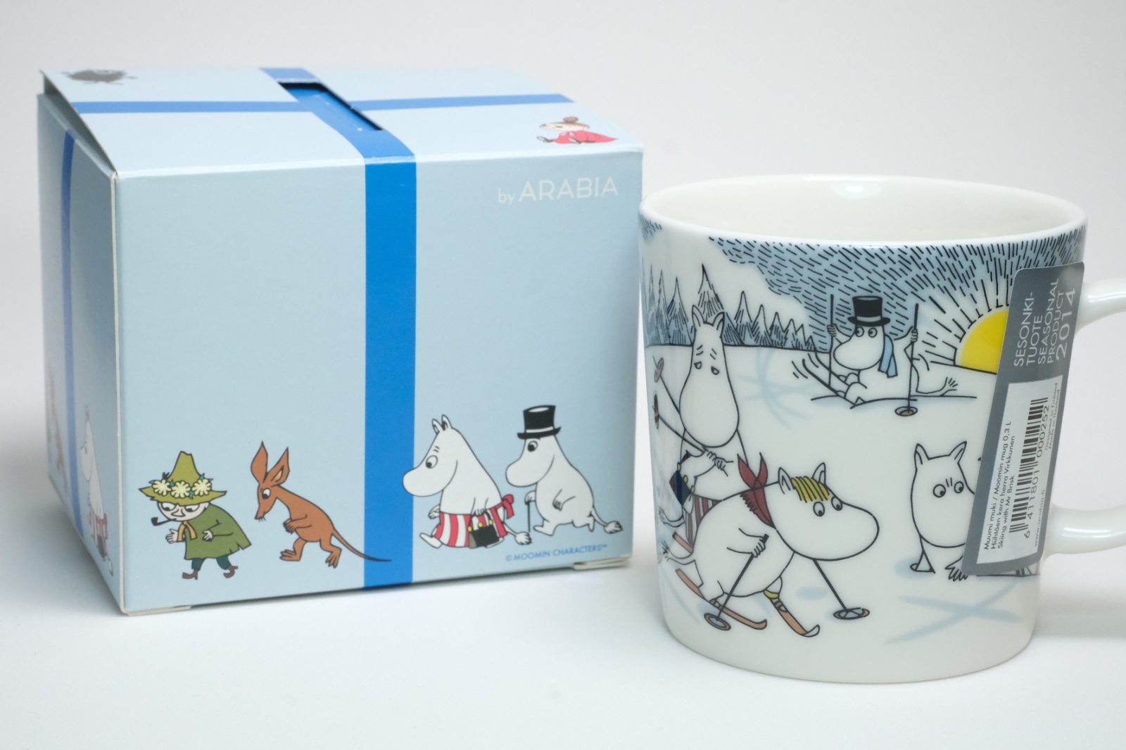 No.13 ARABIA/ムーミンマグ/2014年/冬マグ/スキーイングウィズミスターブリック/廃盤/スペシャルボックスあり/未使用品