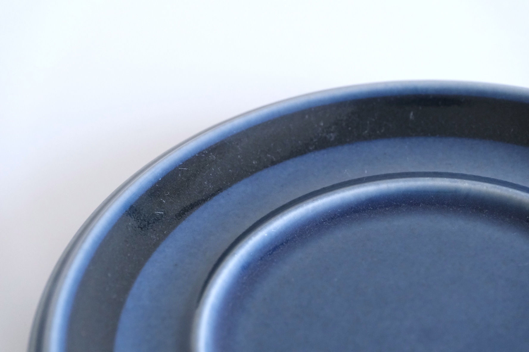 アラビアのコスモスシリーズはブラウンをよく見かけますがこちらは珍しいブルーコスモスです。ブルーの濃淡で花びらが描かれ単純明快なデザインがいかにも北欧デザインです。