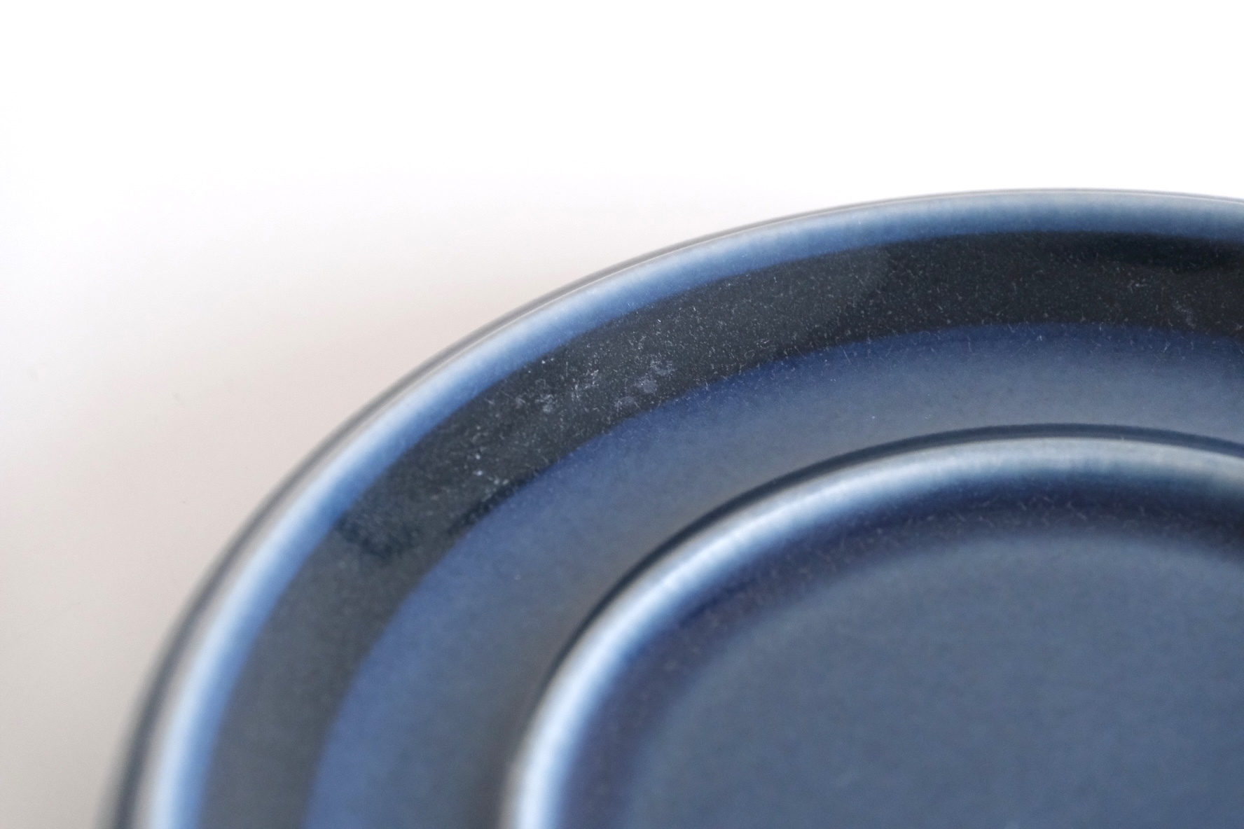 アラビアのコスモスシリーズはブラウンをよく見かけますがこちらは珍しいブルーコスモスです。ブルーの濃淡で花びらが描かれ単純明快なデザインがいかにも北欧デザインです。