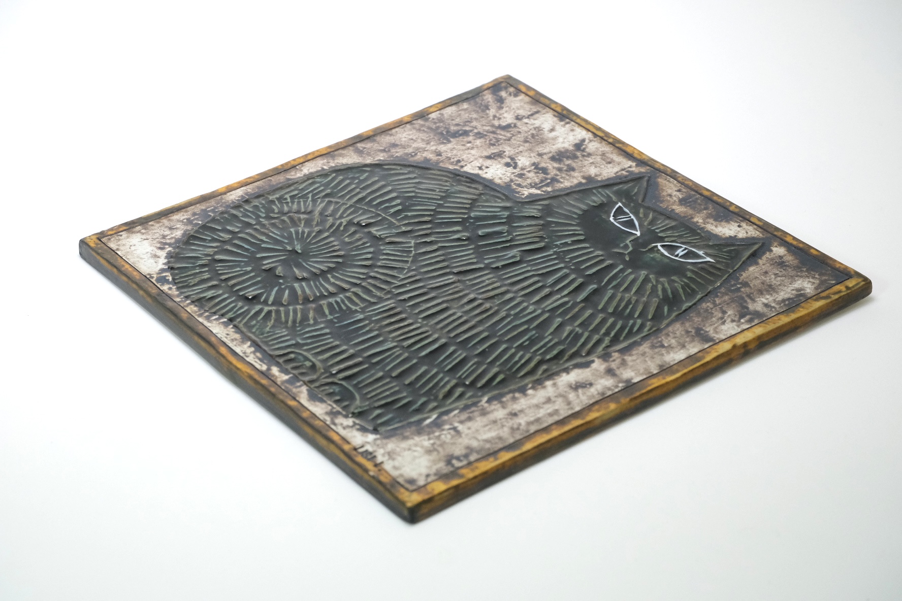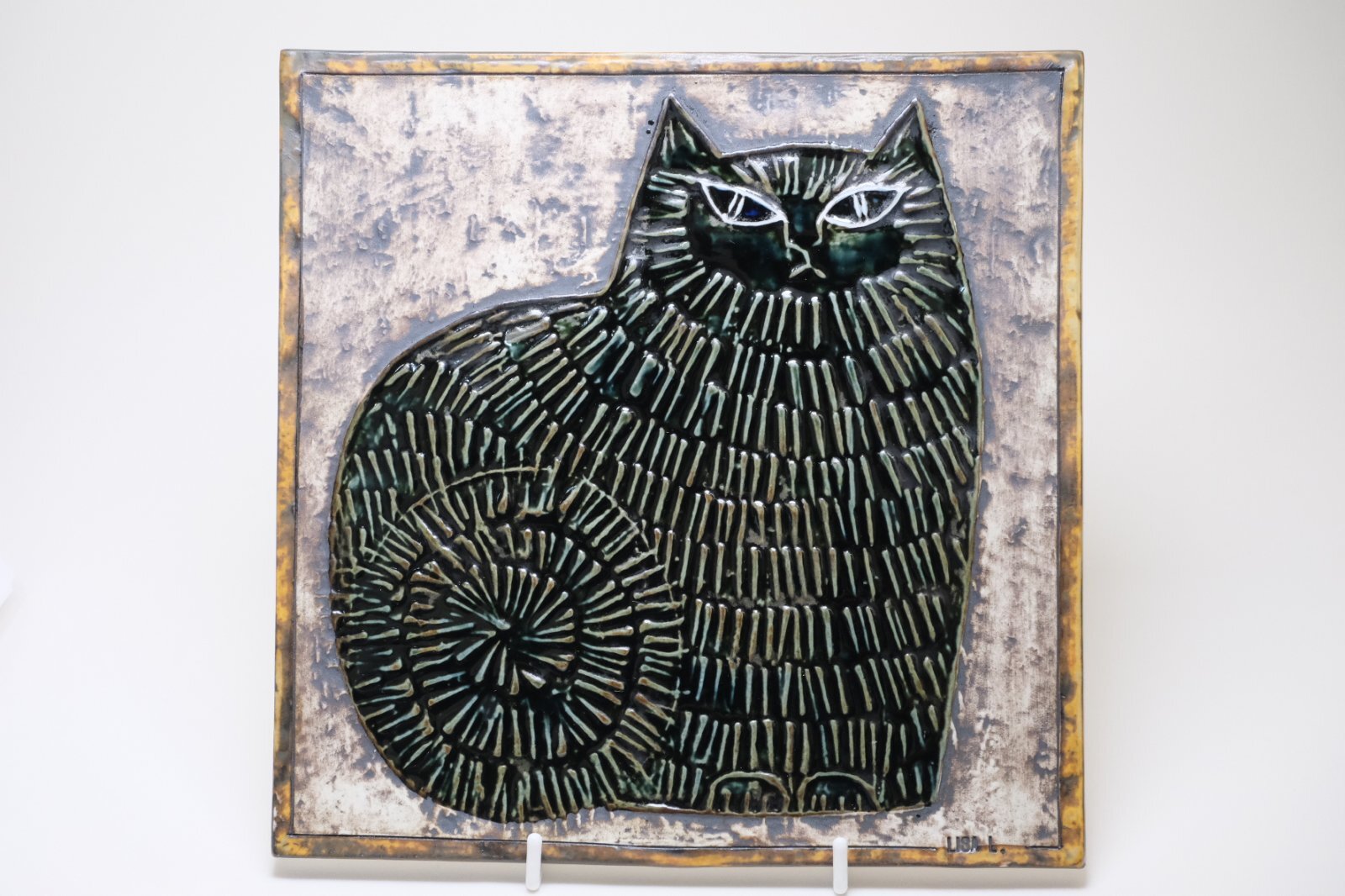 北欧雑貨/Lisa Larson /リサ・ラーソン/ アンティーク/UNIK/Katt/ダークグリーン/ネコ陶板