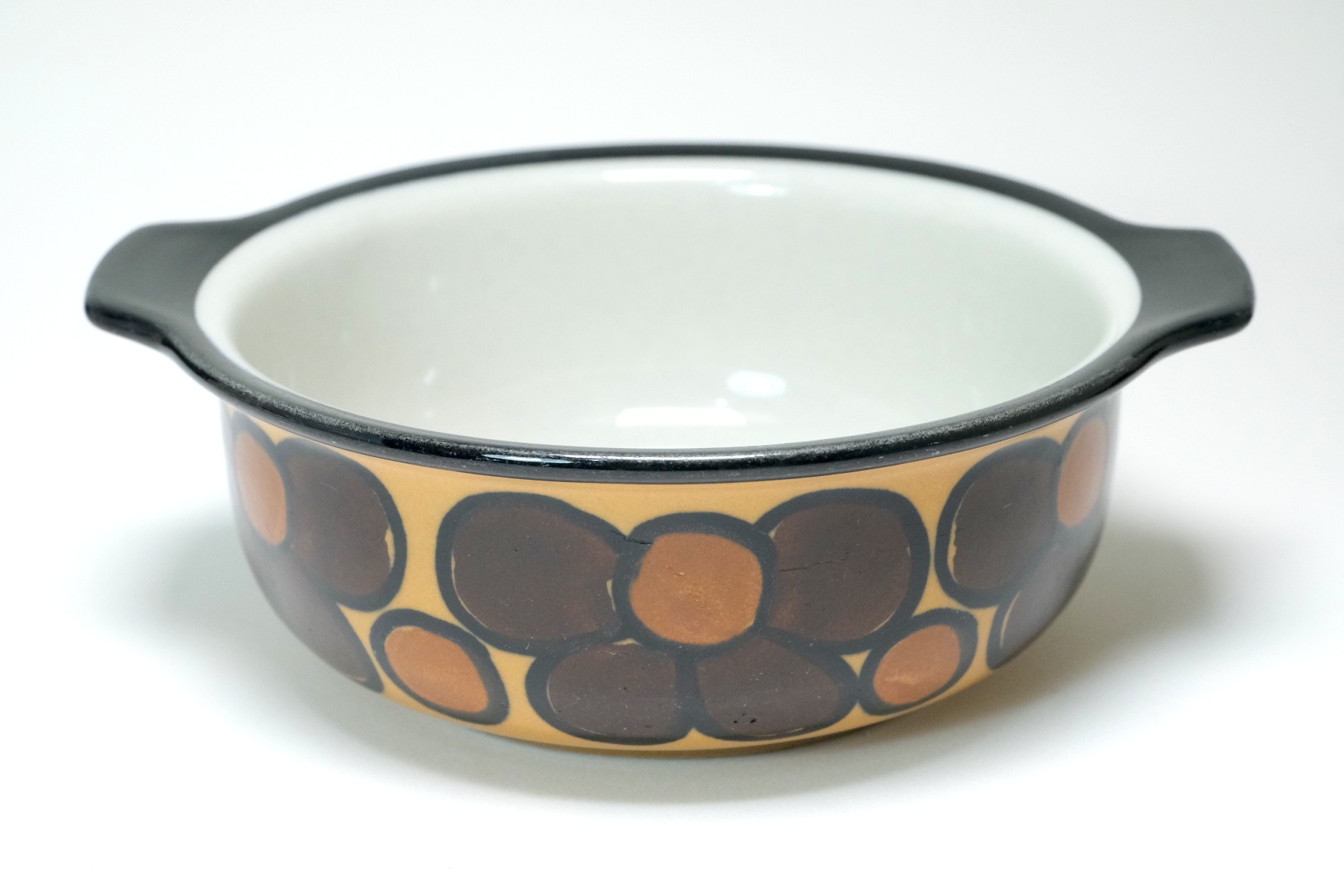 ハンドルが付いていますのでグラタン皿ですが古いものですのでオーブンでお使いになることは推奨いたしません。