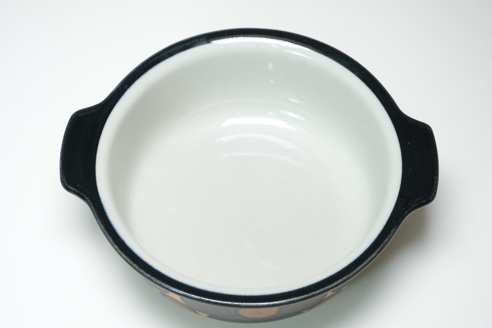 アラビアのアトリエにて手書きで絵付けさらた基調なハンドルの付いたお皿です。