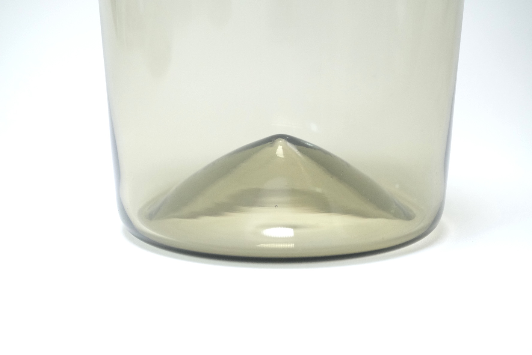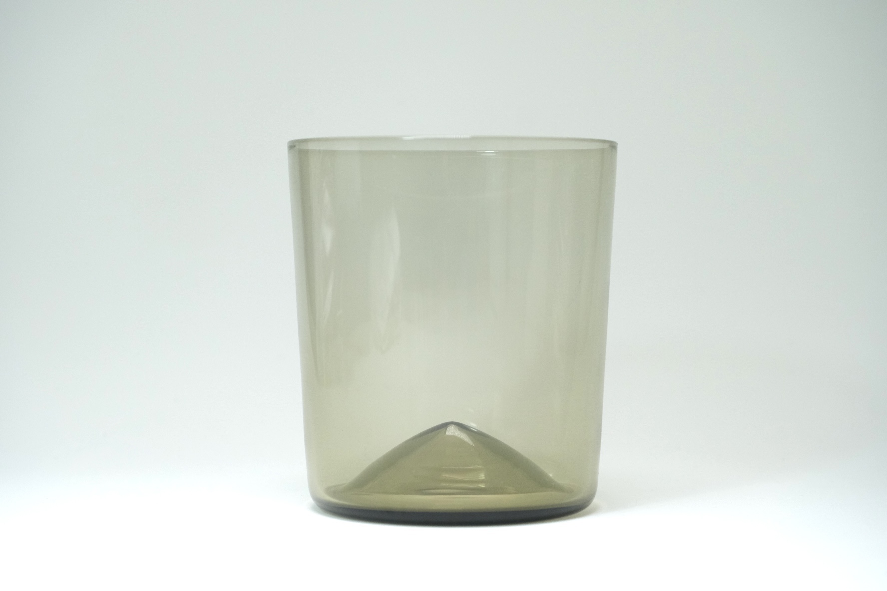 底が山のように盛り上がっているのが特徴で薄いガラスで作られているので山部分が見え、とても美しいフォルムです。