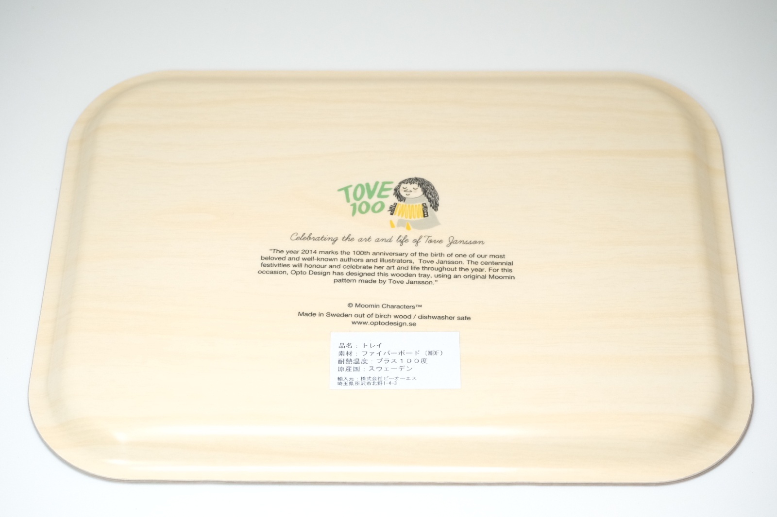 2014年トーベ・ヤンソン生誕100周年を記念して製作された白樺の合板で作られたトレイです。