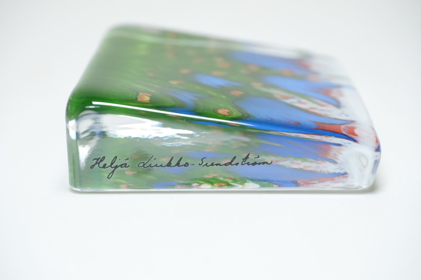 イッタラで製作されたガラスカードと呼ばれるガラスの塊に裏面にプリントがされたオブジェで