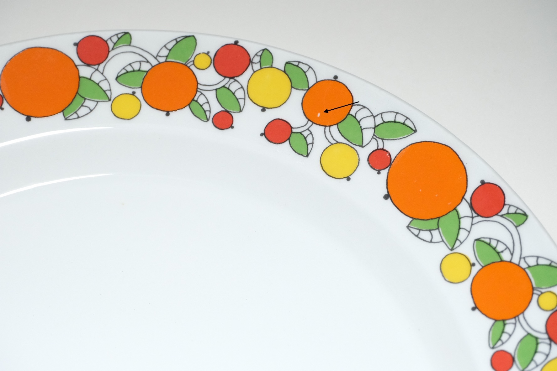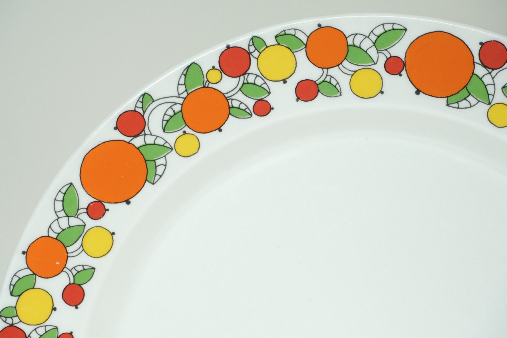 プレートの縁には柑橘系実が連なり、70年代頃のレトロな色合いがとても可愛いです。