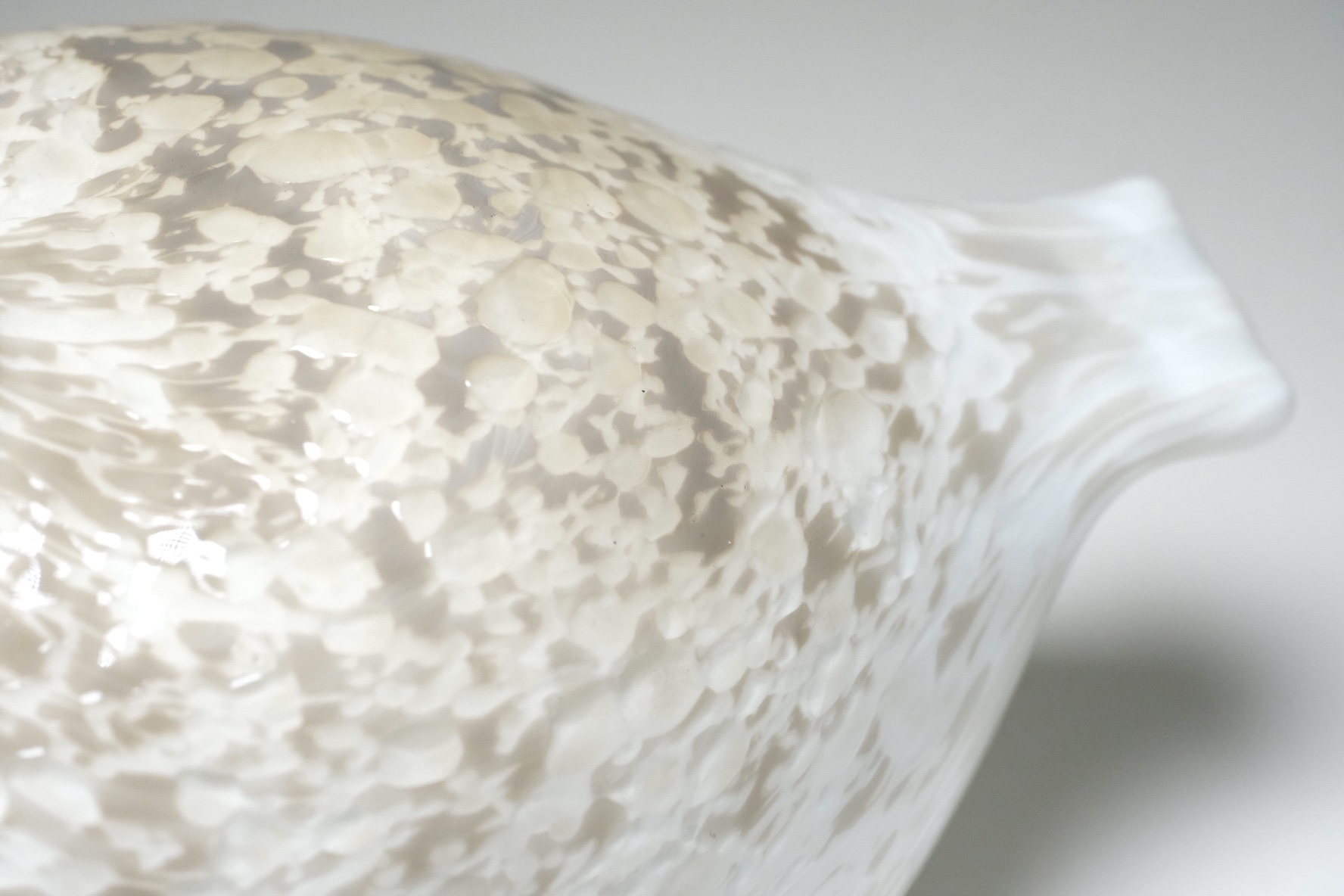 気泡や混入物等や色ムラ等が見られますがこれらはガラスの塊を溶かして製作する過程にて生じるもので、それぞれに個体差を与えています。