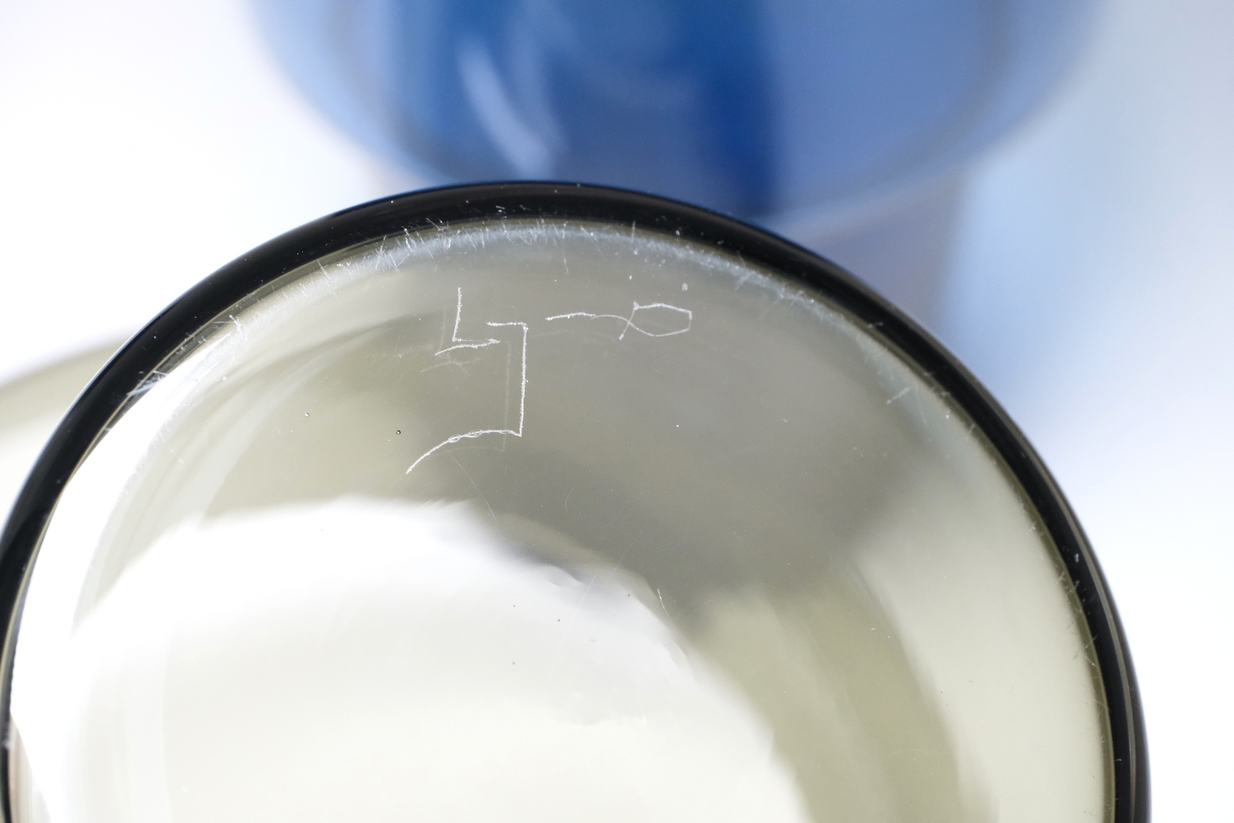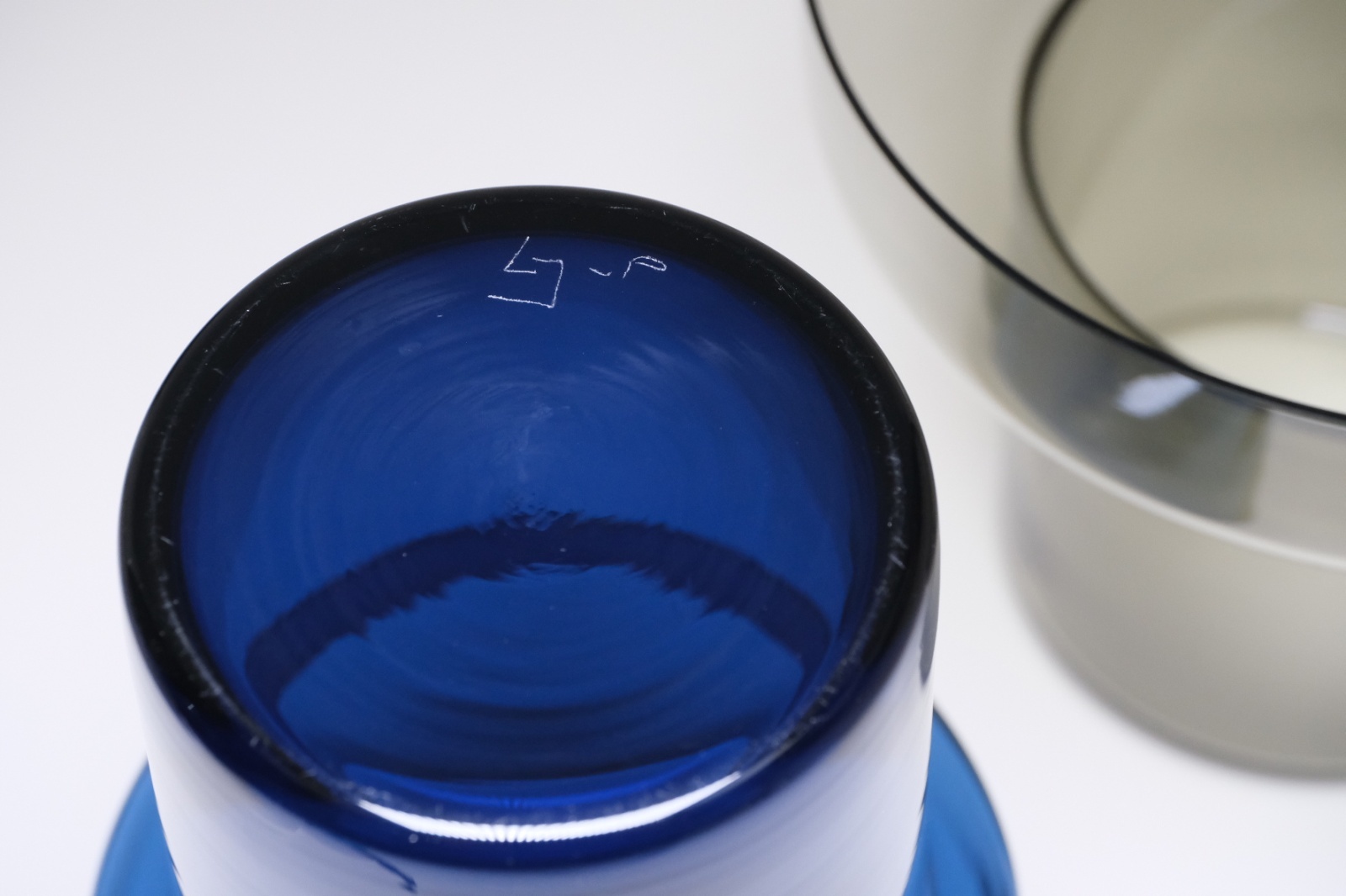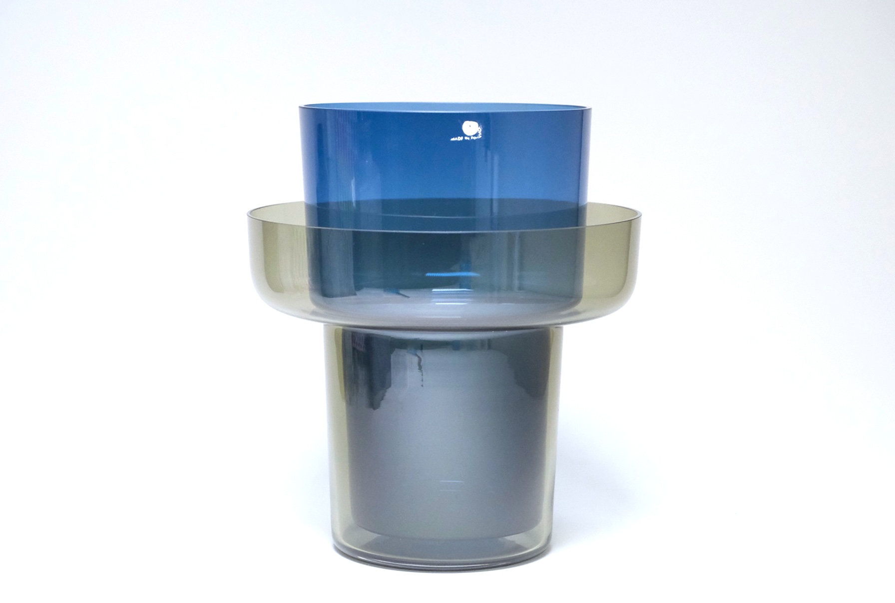 クリアガラスは僅かにオリーブグリーン系のガラスとダークブルーのコンビで