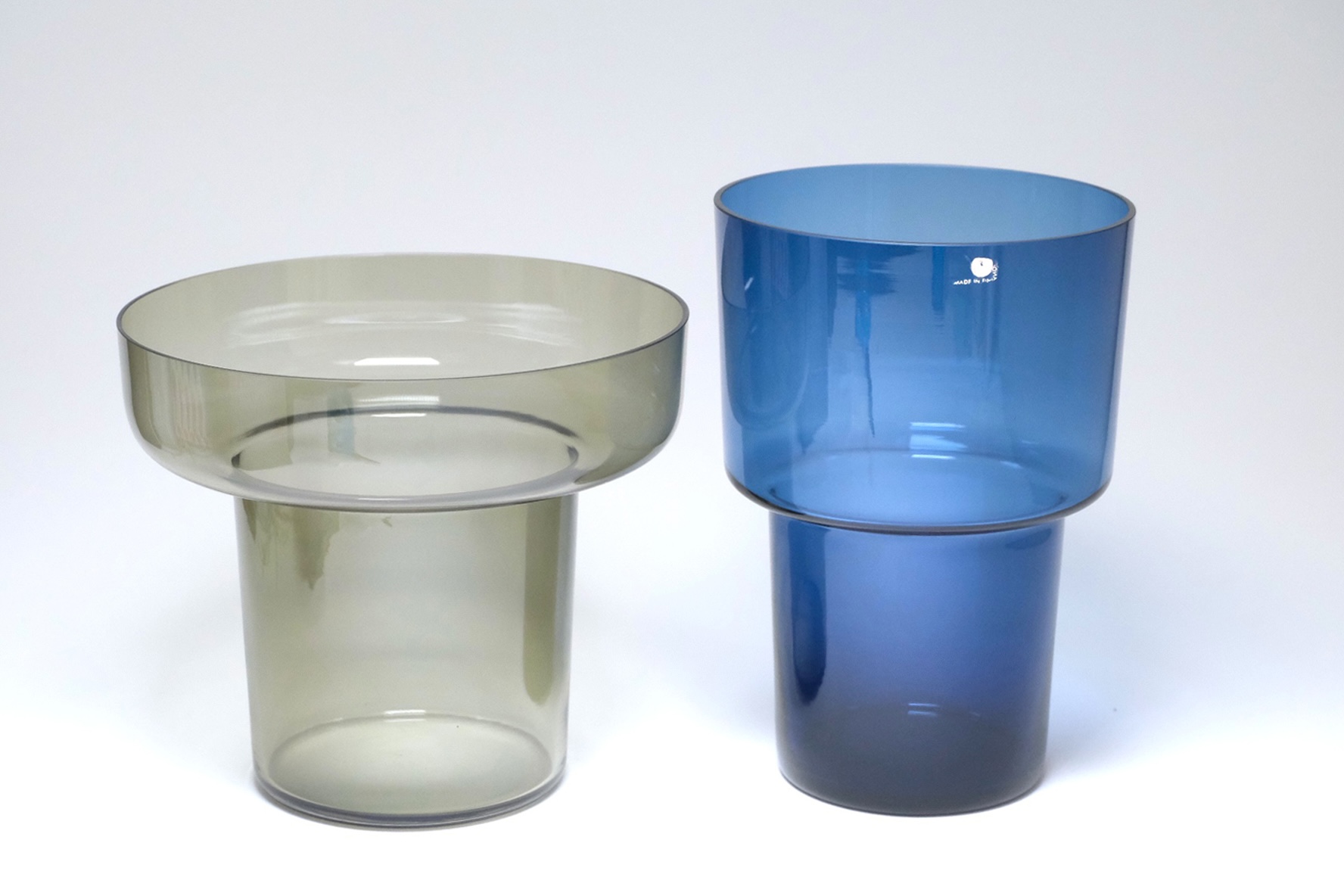 ご紹介のガラスベースは幾重にも重ねて使ったり、スッタッキング出来るフラワーベースです。勿論、別々にもお使いになれます。